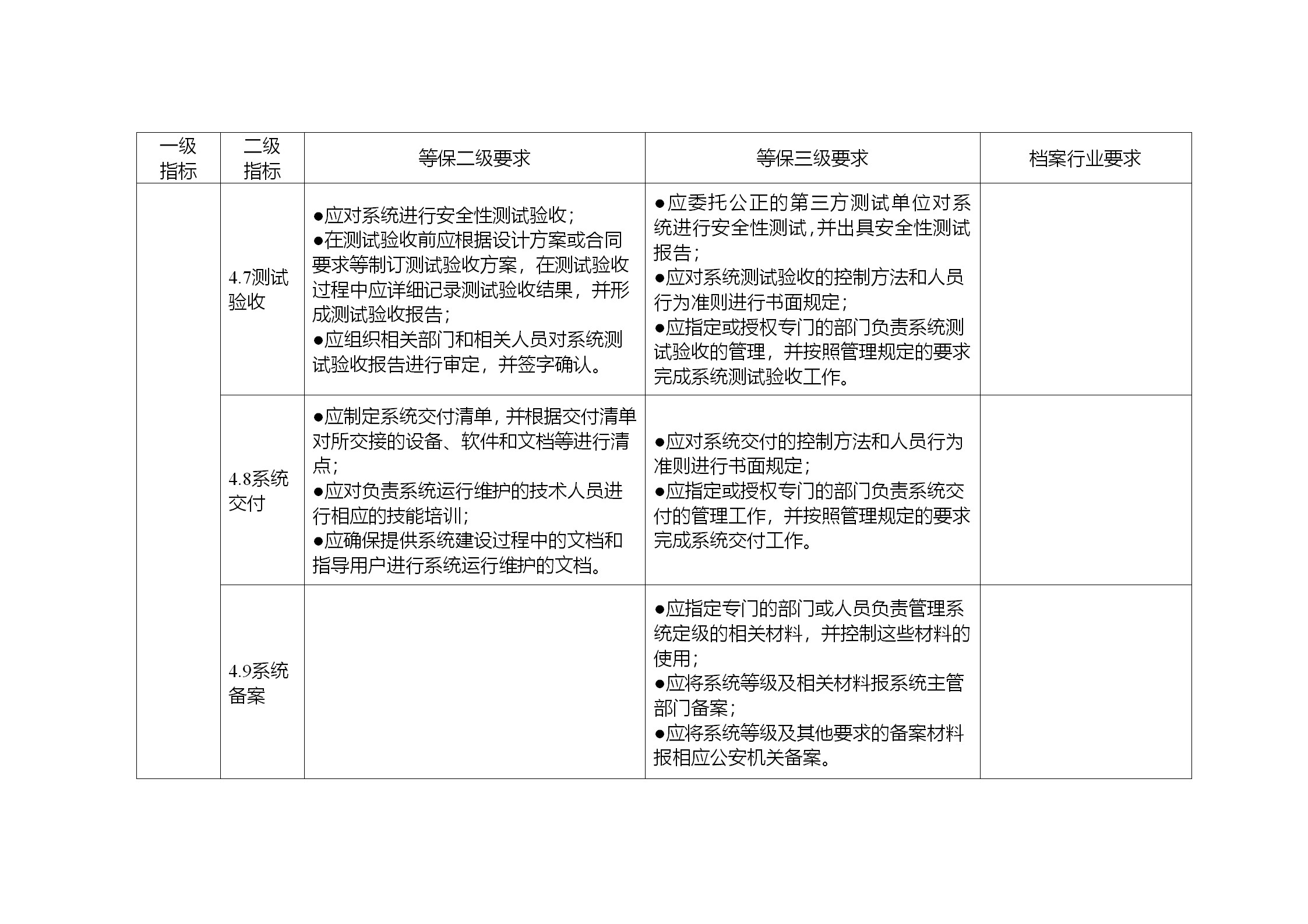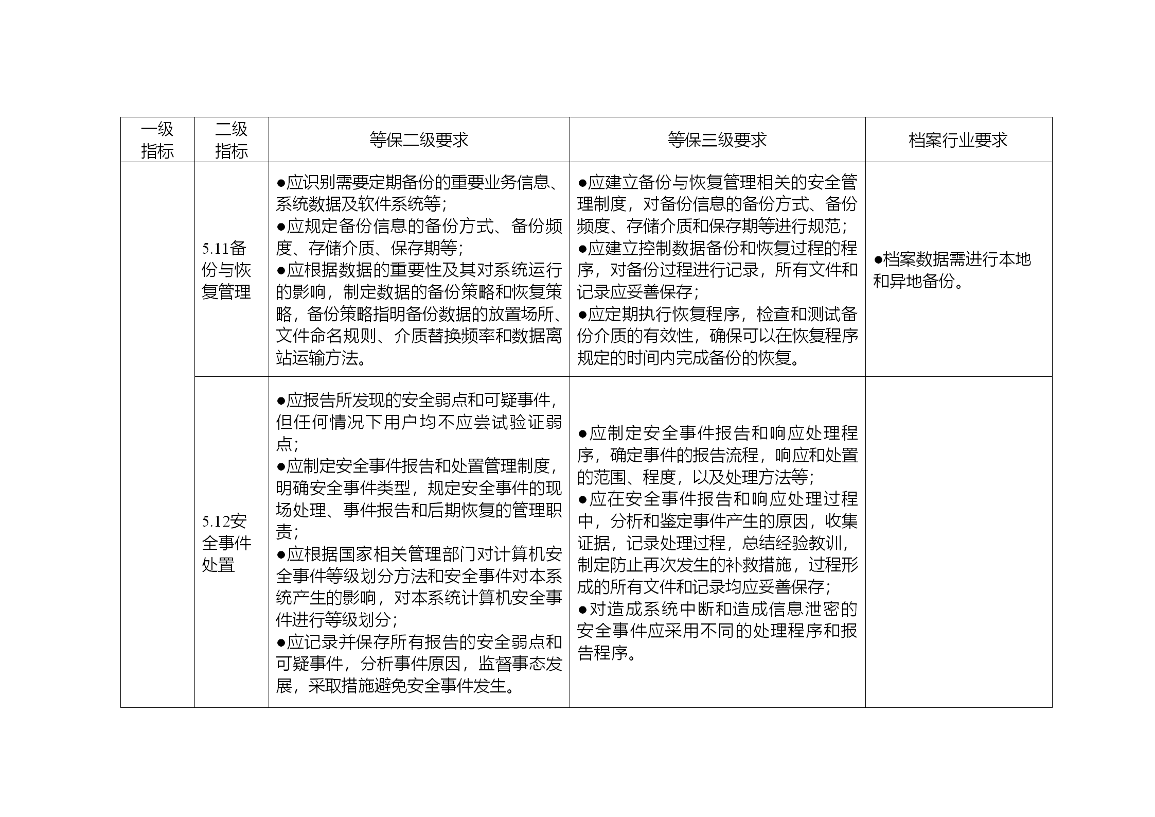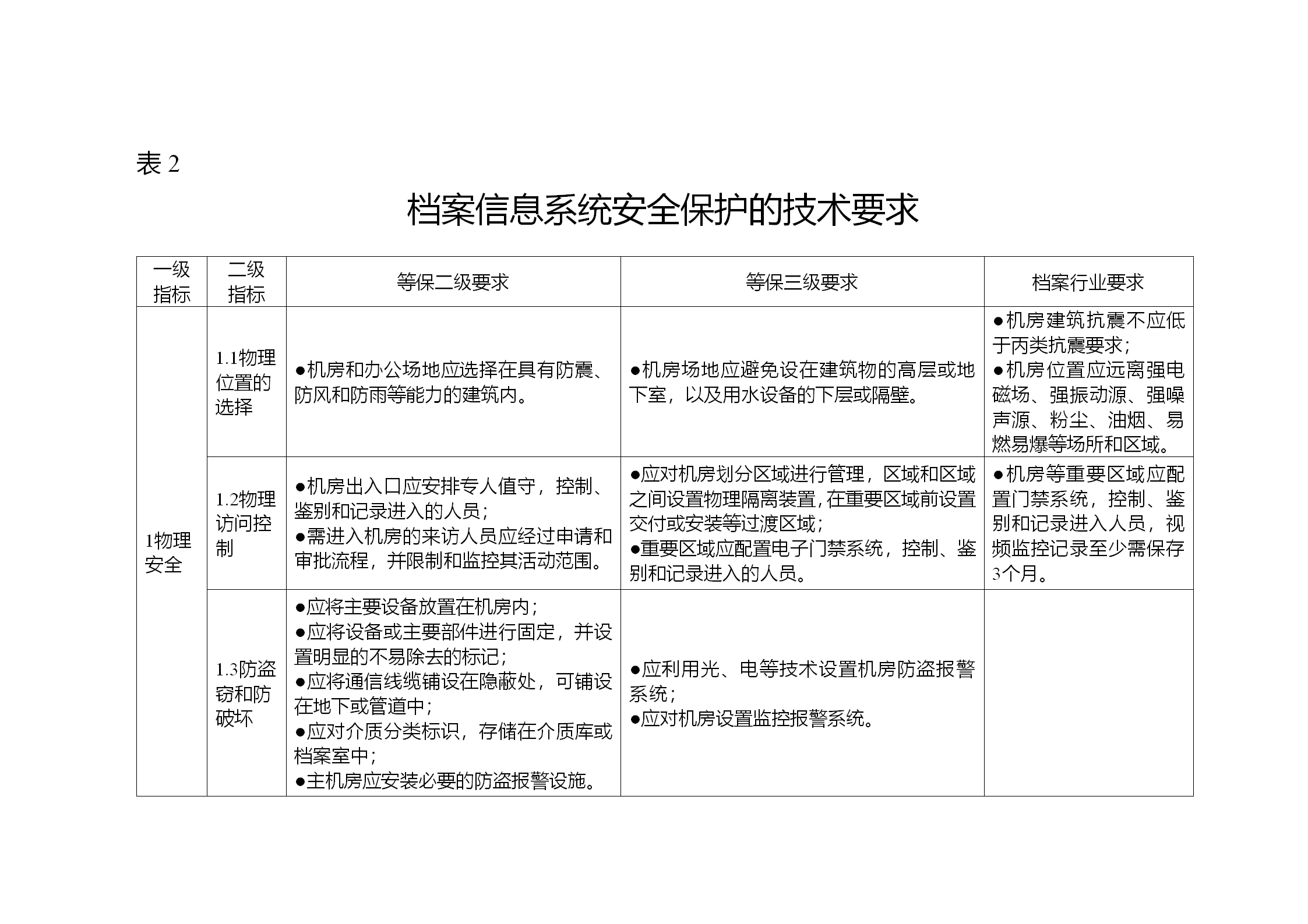 2.《基本要求》中的“等保二级要求”“等保三级要求”中的有关规定均来源于《信息安全技术 信息系统安全等级保护基本要求》(GB/T 22239-2008)中的规定,“档案行业要求”中的有关规定是根据档案信息系统的特点作出的补充规定。